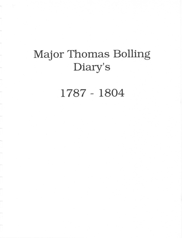 Major Thomas Bolling Diary 1787-1804