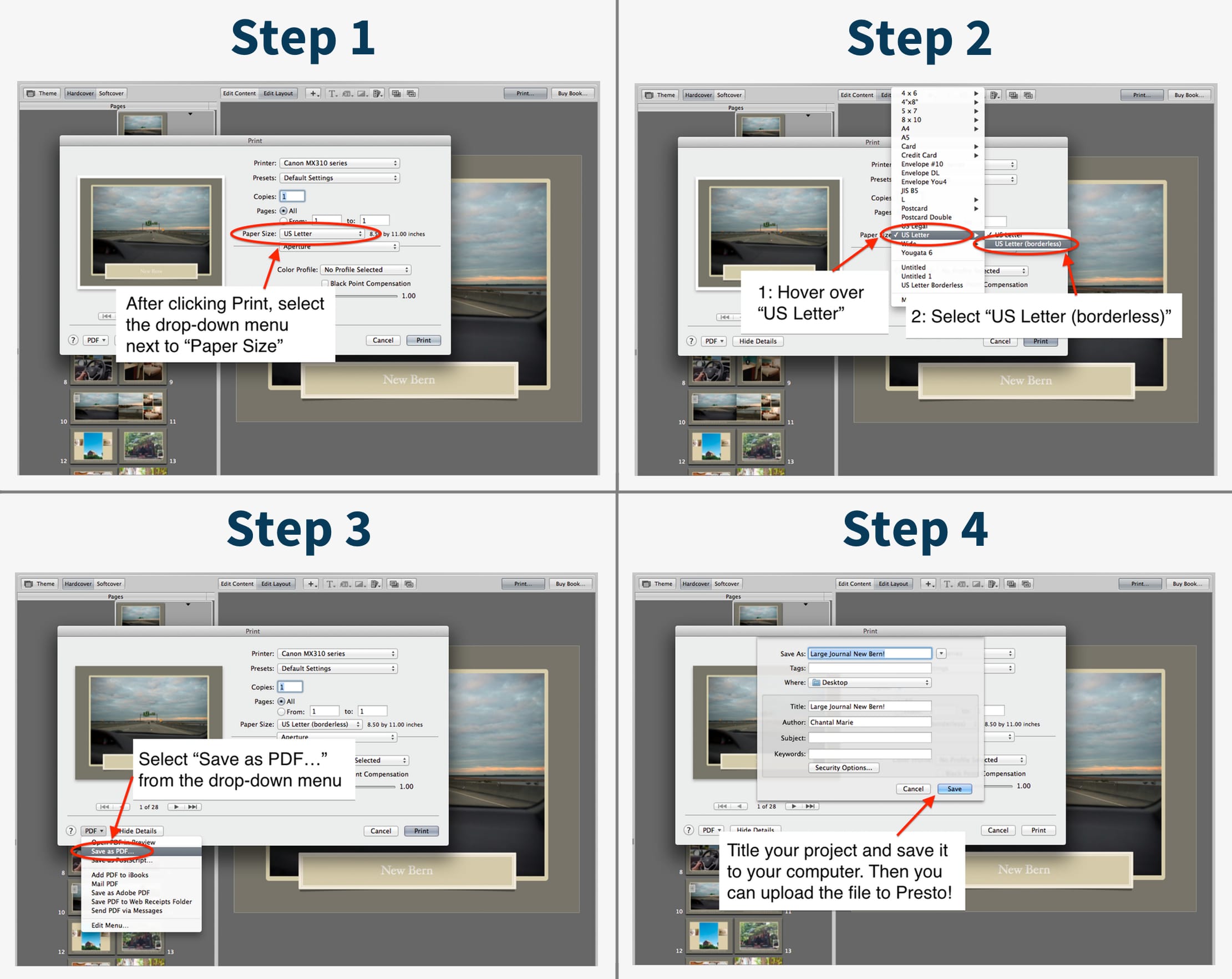 - Create your books and save them following the steps for iPhoto, Aperture, or Photos with each part labeled (i.e. Part 1, Part 2)